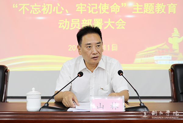 9月11日,世界杯官网“不忘初心、牢记使命”主题教育动员部署会在行政楼8501会议室召开。省委第六巡回指导组组长、省人大监察和司法委员会副主任委员、安顺市人大常委会原主任山林出席会议并讲话;世界杯官网党委书记李树新出席会议并讲话,党委副书记、校长侯长林主持会议,党委委员、副校长代亮传达中央、省委“不忘初心、牢记使命”主题教育第一批总结暨第二批部署会议精神和市委主题教育动员部署会议精神,党委委员、副校长罗红芳出席会议;铜仁市委副秘书长代志华,凯里学院党政办综合科副科长周凌紫出席会议。世界杯官网副处级以上党员干部、各党支部书记、学校主题教育领导小组办公室工作人员参加会议。