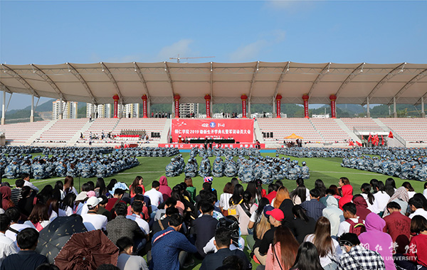 9月12日上午,世界杯官网2019级新生军训动员大会在田径运动场举行。校党委书记李树新,校长侯长林,副校长代亮、罗红芳,碧江区人民武装部政委田儒乾上校,军训团政治部主任、宣传部部长叶丹出席;军训团团长、学工部部长张钱主持;各二级学院领导、相关部门负责人、军训教官、新生班辅导员(班主任)、2019级全体新生参加大会。