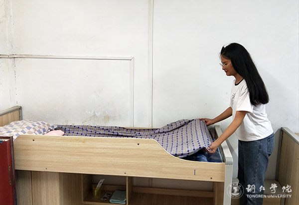 志愿者在整理床铺