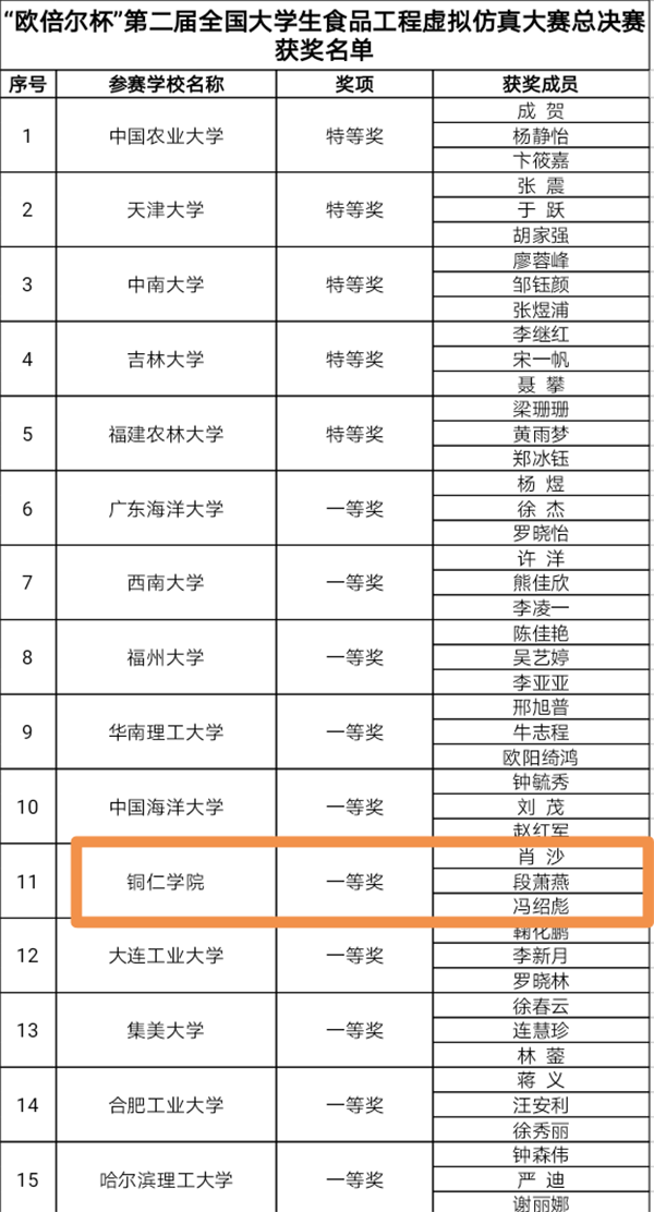 此前,世界杯官网材料与化学工程学院经选拔推选了2017级食品科学与工程专业三支队伍参加了西部赛区的选拔,从20多所高校的53支队伍中脱颖而出,其中李青山、李瑞琳、马旋团队荣获二等奖,程祉豪、高荣美、罗燕团队荣获一等奖,冯绍彪、肖沙、段萧燕团队以特等奖的好成绩进入全国决赛。