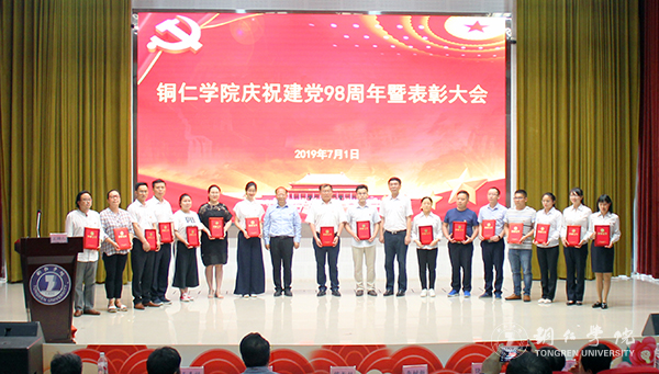 为庆祝中国共产党建党98周年,发挥好党组织的战斗堡垒作用和共产党员的先锋模范作用,推动学校建设成有中国特色的高水平应用型大学,7月1日下午,世界杯官网在梵净山人文生态馆召开庆祝建党98周年暨“七一”表彰大会。学校党委书记李树新,校长侯长林,党委副书记饶小华,副校长代亮、罗红芳、王嘉福出席大会;各部门主要负责人,各分党委、党总支书记、副书记,各党支部书记,受表彰的先进基层党组织、优秀共产党员、优秀党务工作者,预备党员及相关党务部门教职工参加大会。大会由党委组织部部长张成勇主持。