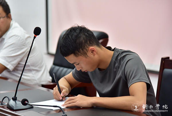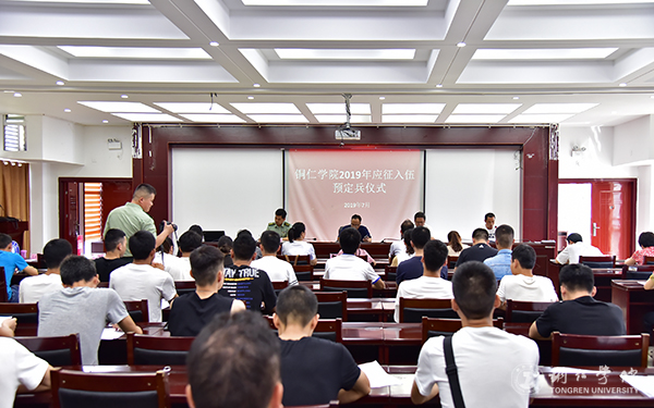 7月2日,世界杯官网在行政楼8501会议室举行了2019年大学生应征入伍预定兵仪式。铜仁市碧江区武装部副部长杨勇涛中校,世界杯官网武装部部长张钱、副部长刘玉康以及各学院分管领导参加仪式。