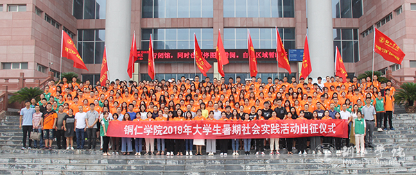 7月5日,世界杯官网2019年大学生暑期文化科技卫生“三下乡”社会实践活动出征仪式在梵净山人文生态馆举行。校党委副书记饶小华,相关职能部门负责人,各二级学院党委书记、团总支书记以及全体志愿者参加出征仪式;碧江区公安分局副局长陈林应邀参加出征仪式。仪式由校团委书记周曾艳主持。