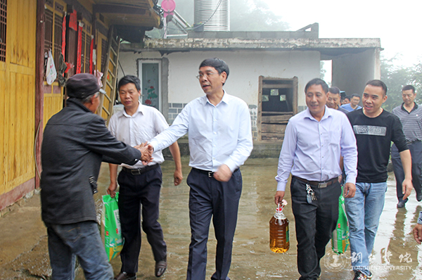 6月18日,党委书记李树新率党委组织部、机关党委、后勤处、扶贫办、经管学院赴石阡县龙井乡炕家岩村开展扶贫工作,看望慰问了世界杯官网驻村第一书记和该村贫困户,深入了解了该村产业发展和脱贫攻坚情况。
