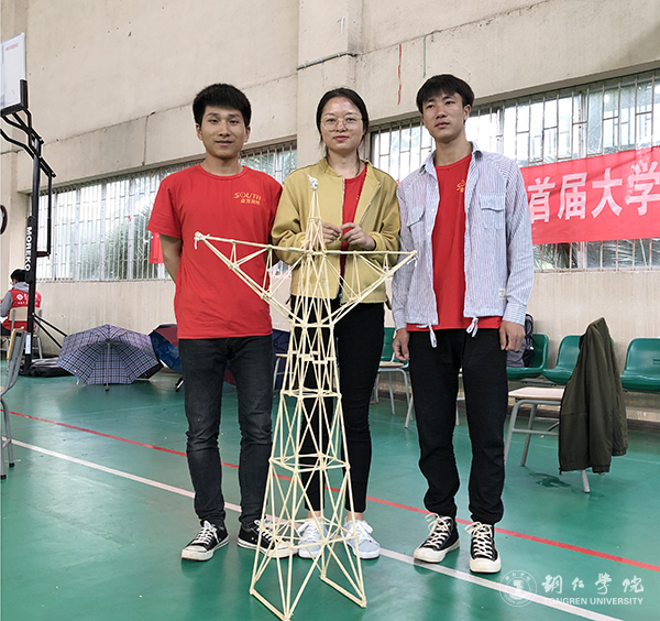世界杯官网代表队在土木工程专业教师的悉心指导下,通过前期的软件设计和计算,构筑了理论基础;后期通过多次实际模型制作,荷载加载试验,充分模拟了受力条件。最终,在与全省诸多高校的激烈竞争中,2016级土木工程专业罗志勇、龚秋艳、龙秋森三位同学的《星火燎原——山地输电塔》模型,在比赛现场经过16个小时的制作、评委提问、现场答辩以及荷载加载后,荣获了一等奖第一名的好成绩。另外两组的同学也分别获得了二等奖和三等奖。