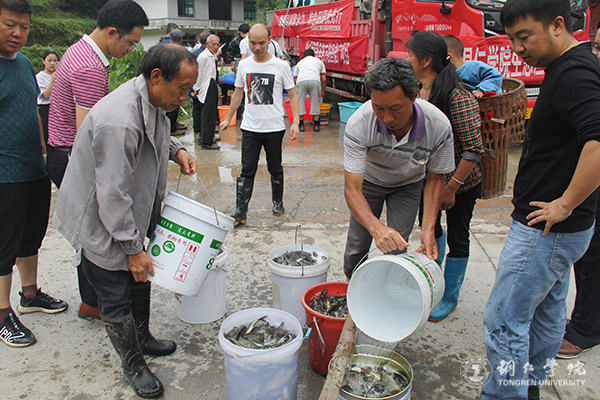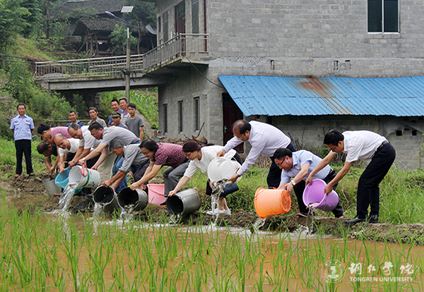 6月10日,校长侯长林率党委宣传部、教务处、科研处、农林学院、乌江学院、社会服务中心到德江县平原镇南坪村开展扶贫工作,给南坪村送去了3000斤稻田鱼苗,为南坪村稻鱼综合种养及带动扶贫示范推广贡献了学校的力量。