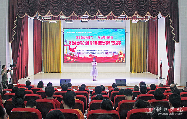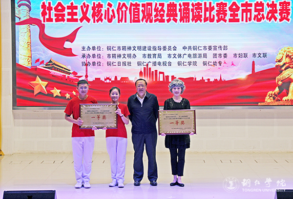5月28日,铜仁市“感恩奋进新时代·一区五地谱新篇”社会主义核心价值观经典诵读总决赛在世界杯官网梵净山人文生态馆举行。铜仁市政协副主席、文明委副主任时晓军出席活动并致辞。经过各区县、市直部门一个多月的层层选拔,共有13支代表队参加了总决赛。世界杯官网选送的作品《祖国万岁》在市直部门比赛中脱颖而出获一等奖并进入市级总决赛,最终在总决赛中荣获一等奖。