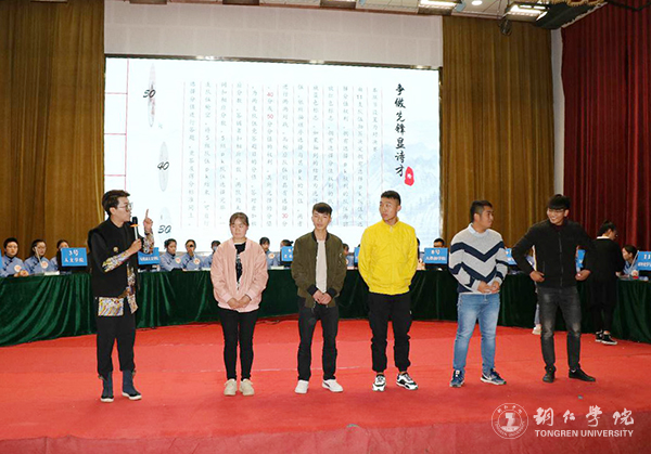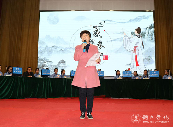 校党委宣传部部长叶丹,学工部部长张钱,国学院党委书记洪頵,校团委书记周曾艳,人文学院党委书记陈强、院长田黎星、党委副书记、副院长杨兴英及各二级学院团总支负责人出席大赛。人文学院古代汉语教研室主任水汶副教授,余桃桃副教授担任本次大赛的评委。各二级学院派出一支三人队伍参加比赛。共200余名观众到场观赛。大赛由校党委宣传部田淼、人文学院张潇叶两位老师主持。
