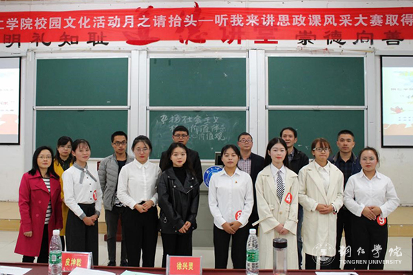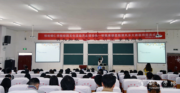 本次大赛由十个学院各推荐一名学生参加。比赛以抽签顺序出场,讲课时间共20分钟,5分钟说课,15分钟授课。十位同学围绕“中国共产党的执政地位是历史和人民的选择”“马克思主义中国化及其发展”“弘扬社会主义核心价值观”“历史分析法评价历史人物”“努力开创社会主义生态文明新时代”“建设生态文明”“五四运动”“令人瞩目的经济成就——旅游业”“封闭是贵州落后的真正原因”“巩固和发展爱国统一战线”十个专题进行了授课。