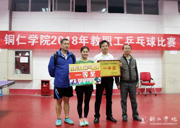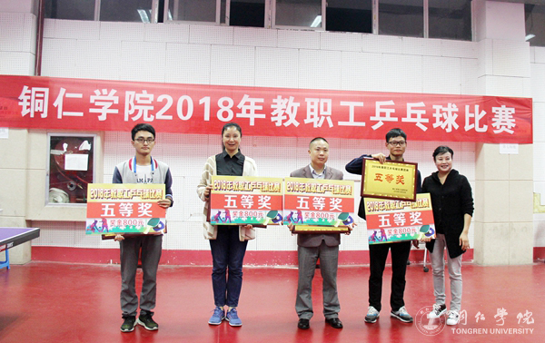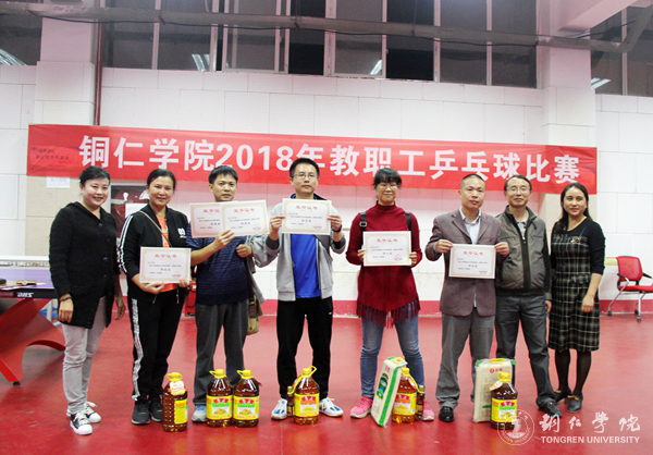 本次比赛分为团体和个人两个项目。经过紧张角逐,艺术学院获得一等奖,工审财纪检监察机关获得二等奖,大数据学院获得三等奖,人文学院获得四等奖,经济管理学院、大健康学院、教育学院、材料与化学工程学院并列五等奖;大数据学院韩春霞、张东虞分别获得女子单打第一、二名,材化学院谢玮获得第三名,国际学院李谦获得第四名,大数据学院聂敏、陈文娟与大健康学院林芳并列第五名;艺术学院丁凯获得男子单打第一名,马克思学院皮乾坤获得第二名,工审财纪检监察机关田华获得第三名,大健康学院文兵获得第四名,大数据学院赵光亮与党政办发规处黄柔与艺术学院王明远、田大河并列第五名。