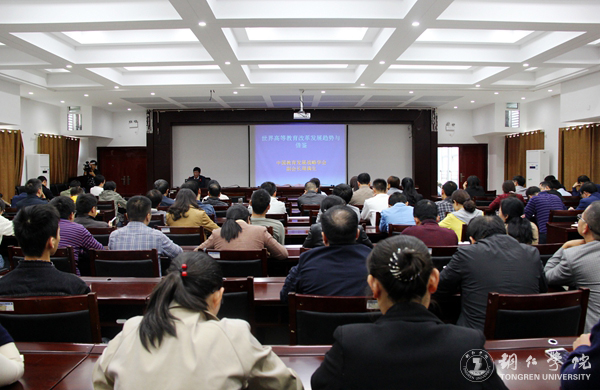 周满生教授主要从高等教育发展普遍趋势、高等教育国际化新视觉、信息技术革命对高等教育的冲击、对大学排名和高校在一带一路作用的认识等四个方面做了深入浅出、精彩生动的学术报告。