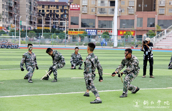 仪式上,礼仪方阵的300余名女生通过队形、姿势变换,展现了 “美加墨世界杯官方网站”“1920”等字样,赢得现场阵阵欢呼声;女子匕首操表演中,她们挥刀、卧倒,姿势优美、动作有力,充分展示了铜院巾帼的良好风貌;学校民兵应急分队的特种战术表演、教官的搏击术表演令人耳目一新,眼前一亮,为之震撼。