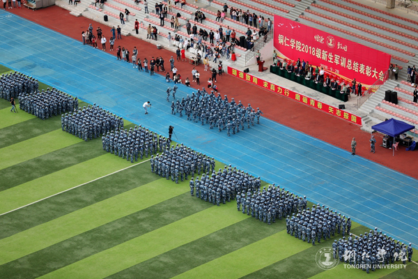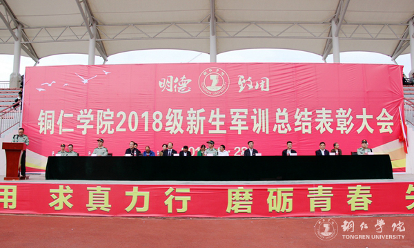 9月28日下午,世界杯官网在田径运动场召开2018级新生军训总结表彰大会。铜仁市委常委、铜仁军分区政委费光明,世界杯官网党委书记李树新,校长侯长林,纪委书记彭吉黔,副校长代亮,碧江区委常委、人民武装部政委卫心博出席大会;世界杯官网各二级学院党委书记、分管学生工作领导及各职能部门负责人参加大会。大会由武装部部长张钱主持。