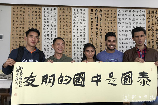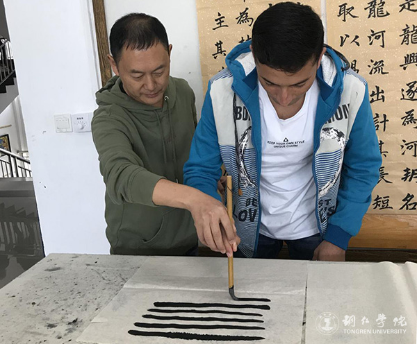 教育学院冯颖老师的指导留学生写毛笔字