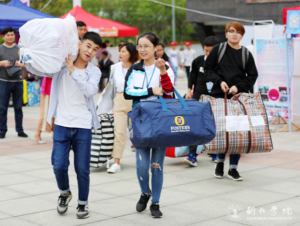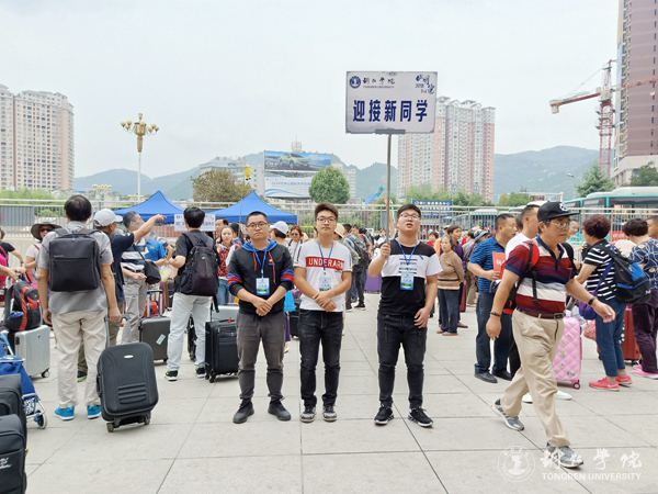 迎新期间,明德桥上氢气球拉起巨幅标语矗立路旁,让人倍感欣喜;行政楼上悬挂的迎新标语诚恳热切,令人眼前一亮。迎新现场,帐篷林立,喜庆热闹,身着统一服饰的迎新志愿者穿梭在现场,为新生搬行李、办手续、讲解学校情况和报到注意事项,使他们一进入校园就感受到了学校师生良好的精神面貌和集体大家庭的温暖。