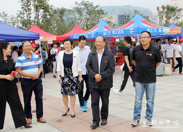 校长侯长林、副校长罗红芳到迎新现场看望新生
