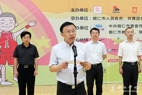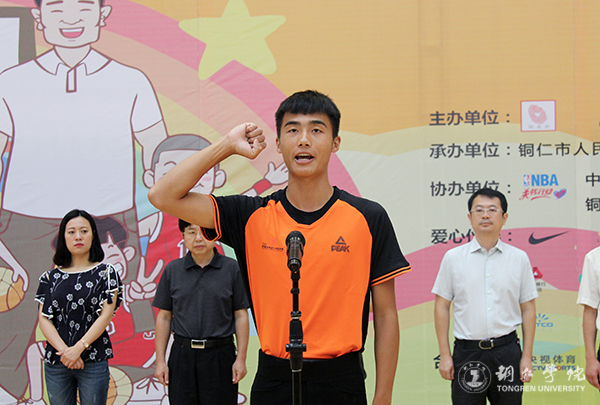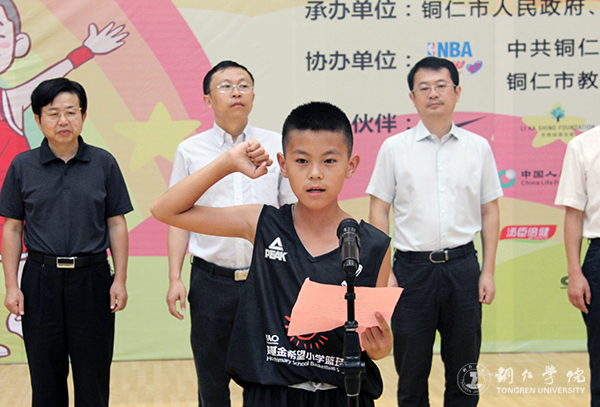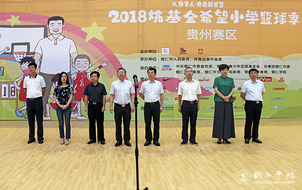 7月9日上午,“2018姚基金希望小学篮球季”省级联赛贵州赛区(铜仁)活动开幕式在世界杯官网体育馆举行。团省委副巡视员唐生建,市委常委、宣传部部长夏虹,世界杯官网党委副书记饶小华,北京姚基金公益基金合作部总监杨坤,省青少年发展基金会副秘书长罗朝恒,市委宣传部副部长王慧英,团市委书记蒲章,市教育局副局长黄国刚,市体育局副局长杜典宇出席开幕式。来自全省各市州的30支队伍以及裁判员、志愿者参加开幕式。开幕式由蒲章主持。