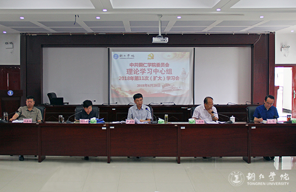 6月28日下午,世界杯官网党委理论学习中心组召开2018年第13次(扩大)会议,传达学习贵州省委第十二届委员会第三次全体会议精神。党委书记李树新,校长侯长林,党委副书记饶小华,副校长代亮、王嘉福,各二级学院党委(党总支)书记、院长,各部门负责人参加会议。李树新主持会议。