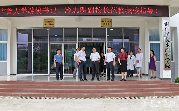 在实验实训中心,教务处副处长冉茂武介绍了实验实训中心的整体情况;材化学院相关负责人介绍了学校科研团队实施电解锰渣资源化综合利用项目,解决铜仁市锰矿资源生产开发产生的电解锰渣资源化处理,加快资源化利用的工业化进程取得的成效。在图书馆,馆长梁正海介绍了图书馆的规模、馆藏情况,带领大家参观了馆藏室,向大家展示了图书馆里的“镇馆之宝”。在梵净山人文生态馆,国学院院长廖延林介绍了梵净山人文生态馆的整体布局、功能作用以及管内的各类藏品和蕴含其中的黔东地域文化。