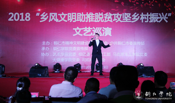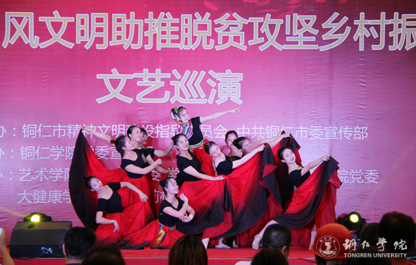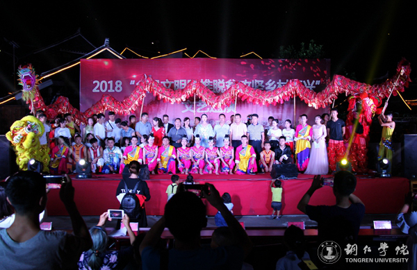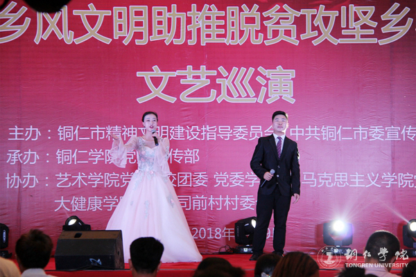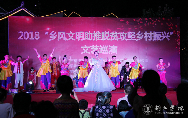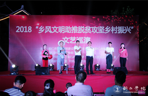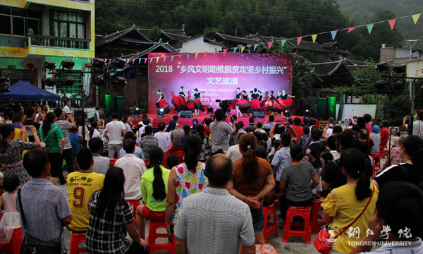 6月19日晚,由铜仁市精神文明建设指导委员会、中共铜仁市委宣传部主办,世界杯官网党委宣传部承办,艺术学院、司前村村委会等共同协办的“2018乡风文明助推脱贫攻坚乡村振兴”文艺巡演在瓦屋乡司前村陈家寨举行,该村全体村民齐聚一堂观看了演出。