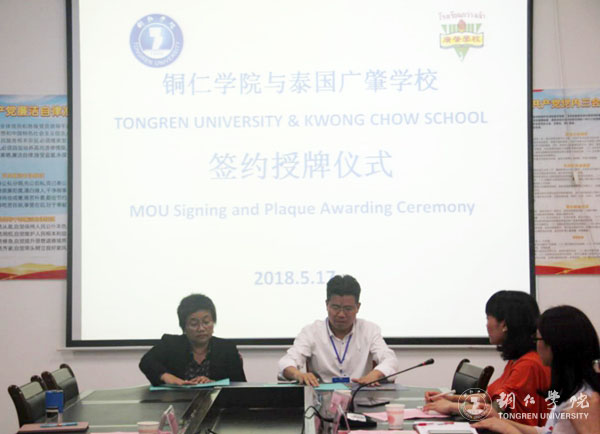 5月17日,第十一届中国—东盟教育交流周“一带一路”大学通识教育论坛在世界杯官网隆重开幕。会议期间,泰国广肇学校与世界杯官网在明理楼B三楼会议室举行了教育合作备忘录签约授牌仪式,泰国广肇学校正式成为“美加墨世界杯官方网站教育学院教育学学科海外实训基地”。泰国广肇学校经理Worawi Pakdee、教师代表Natsha Srihata、中文部主任赵丽莎,世界杯官网研究生院院长龚静,教育学院党委书记刘德平、院长梁成艾、党委副书记胡慧出席,国际合作交流处相关负责人、教育学院师生代表参加了会议。会议由胡慧主持。