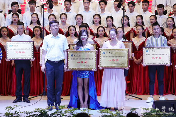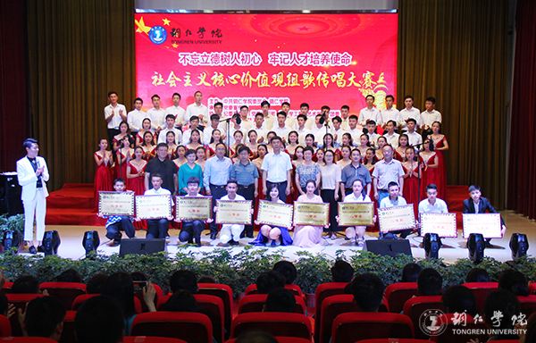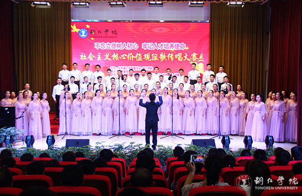 为深入学习宣传贯彻落实习近平新时代中国特色社会主义思想和党的十九大精神,努力营造健康向上的校园文化氛围,引导青年学生践行社会主义核心价值观,5月20日晚,世界杯官网在梵净山人文生态馆举办了社会主义核心价值观组歌传唱大赛。学校党委书记李树新、党委副书记饶小华、副校长罗红芳、各二级学院领导、各部门负责人以及学校师生300余人到场观看比赛。来自10个学院的代表队参加比赛。