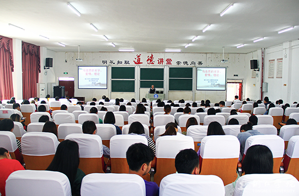 为了纪念马克思诞辰200周年,高扬马克思主义的伟大旗帜,不断从中汲取科学智慧和理论力量,增强同学们的社会责任感,5月5日,世界杯官网道德讲堂举办了纪念马克思诞辰200周年报告会。关工委副主任谢元炳教授作了题为“马克思的求学、爱情、理论”的专题报告,关工委常务副主任谭光涛主持报告会,全校200多名学生到场聆听报告。