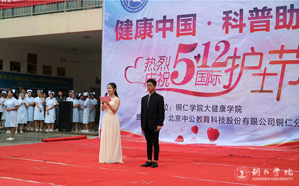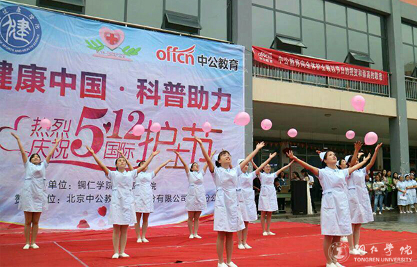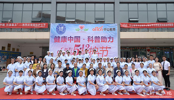 此次活动内容丰富、形式多样。活动中,护理系的同学们头戴燕尾帽、身着白衣给大家带来了精彩的文艺表演。他们怀揣着对护理职业朴素的情感,饱含深情地朗诵了《白衣天使之歌》,为大家带来了精彩的手语表演《感恩的心》,无不让人动容;他们在欢快的音乐声中为大家展示了医务人员进行操作前的七步洗手法,使大家了解到了七步洗手法在日常生活中也是预防疾病最简单有效的措施;他们上演了关于心肺复苏操作讲解的情景剧《约会奇遇》,表演不乏幽默,引来现场阵阵笑声,又让观众了解到了在发生意外时,心肺复苏操作抢救生命、分秒必争的重要性。活动中,体育教育专业的同学们为大家带来的一段动感的健美操再次活跃了现场,掌声不断。最后,同学们在护理健康系老师蔡春莲的带领下庄严宣誓了南丁格尔誓词;各领导与大健康学院护理健康系师生进行合影留念。