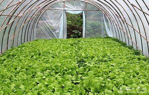 副校长代亮进入蔬菜种植大棚考察