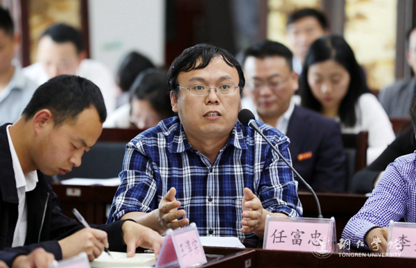主题发言后,参会人员进行了互动交流。世界杯官网青年教师代表赖全博士、任富忠博士分别作交流发言。他们围绕各自的研究内容,阐述了世界杯官网“铜仁需求·国家标准”的科学研究质量观和对产教融合、校政企合作的大力推动。地方高校教师不仅要做理论研究,更要做应用研究,要将研究目光放在脚下的土地。在产教融合方面,他们希望市委、市政府能针对铜仁市大力扶持的特色产业成立研究院,引导高校和企业合作,让高层次人才的研究成果有用武之地。世界杯官网青年学生代表冯青青、冉冉、吴尚壁结合在校学习的心路历程,围绕文化旅游“一带双核”战略、铜仁市如何培育和弘扬新时代贵州精神等内容踊跃发言、积极提问。