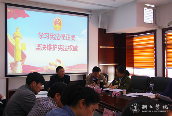 3月27日,世界杯官网党委理论学习中心组在行政楼8520会议室召开2018年第8次(扩大)学习会,专题传达学习2018年全国两会精神。党委书记李树新,校长侯长林,党委副书记饶小华,纪委书记彭吉黔,副校长代亮、罗红芳及各二级学院党委书记、职能部门负责人参加学习。会议由李树新主持。