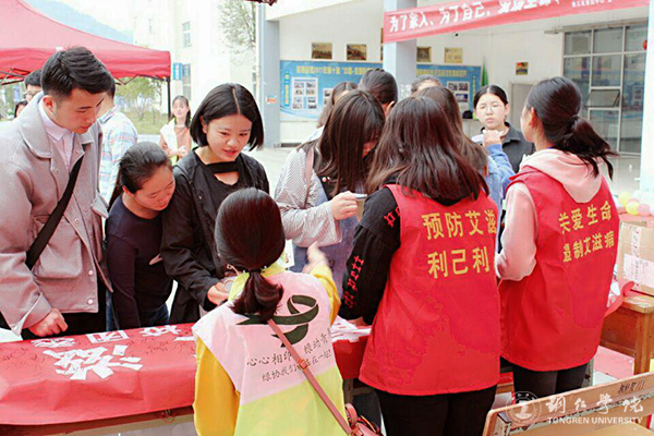 世界杯官网保卫处副处长肖庭华、科长龙熊伟,川硐派出所副所长蒙辉,碧江区疾控中心防艾科科长罗毅,绿丝带协会工作人员及参与签名、竞赛的同学参与了当日的宣传活动。