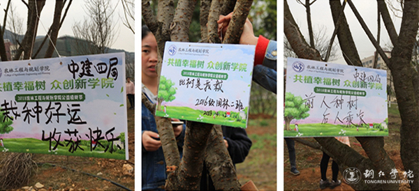 植树活动在明理楼A前和音乐楼旁的绿化地进行。现场,大家激情饱满、斗志昂扬、干劲十足、栽树播绿。在奉化兴梵公司相关专家的指导下,大家有序地挥锹铲土、填苗入坑、培实新土、提桶浇水,种下一棵棵绿色之树。不少人还在种植好的树上挂上认领牌,并写下了自己的愿望和祝福。