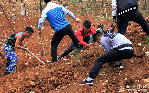 据悉,本次种植的树木主要有马尾松、樱花树两种。经过三个多小时的努力,一棵棵饱含绿色生命的树木稳稳地种植在土地上,成为了校园里一道美丽风景线。