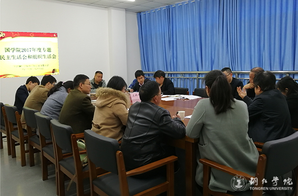 国学院教工支部书记李锦伟代表教工支部作2017年度教工支部广泛征求意见建议和查摆问题情况说明,分别从政治功能、四个意识、工作作风、自我要求、作用发挥等方面进行了详细的汇报,对问题产生的原因进行了深刻的剖析,并提出了相应的整改措施,与会人员针对支部存在的问题开展了批评。参会党员分别开展了批评与自我批评。