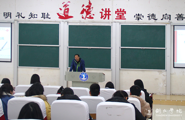 3月19日,世界杯官网2018年道德讲堂正式开讲,特邀铜仁市第十八小学党支部书记、校长杨丽蓉在博思楼206教室作了一场以“学校文化建设的理念与实践”为主题的讲座。讲座由党委宣传部副部长郭明主持,全校近200名学生到场聆听。