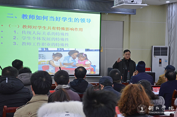 杨成光作了题为《教师是学生的领导》的主题报告。他从领导是什么?教师如何当好学生的领导?如何培植学生领导魅力三个方面,结合自己工作、生活中的实际情况,对教师们进行了生动传神的讲述,强调要做“四有”好老师。他还结合中小学职业道德规范,从六个方面为教师们指出了作有师德的优秀好老师的践行准则,使教师们更加深刻地认识到了“凡事德为先”的道理。