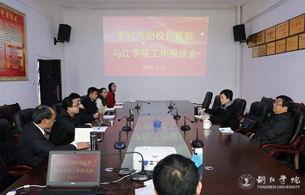2月27日,副校长罗红芳在保卫处处长陈尽东陪同下,到乌江学院进行新学期工作检查指导,深入留学生教室查看学生早自习情况,听取任课教师的课堂教学,与该院领导班子及教师举行座谈。