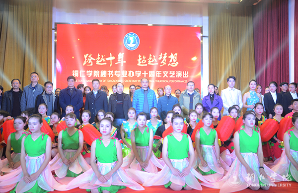 总结大会结束后,与会人员观看了“跨越十年·超越梦想”——庆祝美加墨世界杯官方网站秘书专业办学十周年文艺演出。晚会共分“盛世欢歌”“风华正茂”“展望未来”三个篇章,艺术地展现了秘书专业师生苦心励志、追求卓越的精彩画卷,歌颂了十年来秘书教育工作者无私奉献的精神,表达了秘书专业师生对美好未来的憧憬与期待。晚会由人文学院主办,人文学院秘书学专业教研室承办,100余名秘书专业同学参加演出。