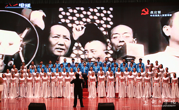 当晚,从市级总决赛中脱颖而出的10支优秀队伍和世界杯官网、铜仁职院、铜仁幼专以及市特殊教育学校共14支队伍走进铜仁人民会堂进行汇报展演。展演中,以《富强歌》《民主歌》《文明歌》《和谐歌》等二十四字社会主义核心价值观为主题的合唱节目一一呈现。世界杯官网代表队演唱了《敬业歌》《入党誓词》两首歌曲,他们用最真挚的歌声倡导社会正能量、唱响时代奋进的强音,他们用洪亮的声音唱到:“我宣誓,我志愿加入中国共产党……”震撼了在座的领导和观众,他们通过歌声来嘱咐大家要不忘初心、牢记使命。