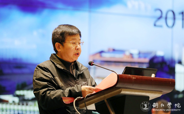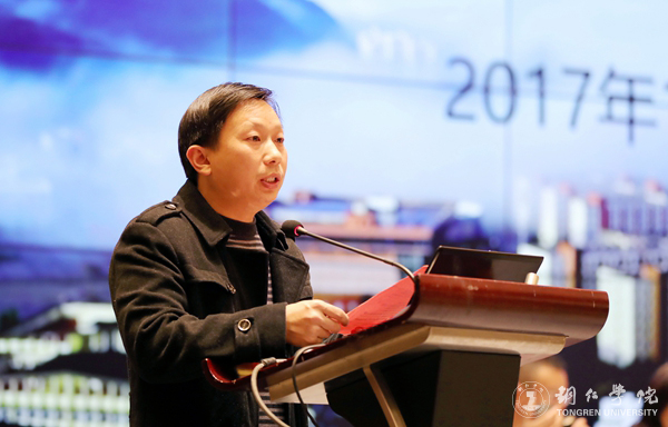 田兴斌作了发言,他介绍了国际学院的办学历史、师资力量等基本情况。他说,多年来,国际学院围绕学校“上水平、出特色”要求,立足地方需求办学,先后承担了铜仁市梵净山佛教论坛、万山国际风筝节等大型活动的大量翻译任务,为地方基础教育和经济社会发展做出了积极贡献,赢得了良好的社会声誉。他希望大家珍惜这次学习机会,积极参与分享和讨论,力争达到融会贯通,并在以后的工作中坚持理论联系实际,做到学以致用。