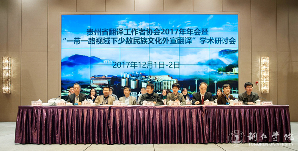 12月2日,由贵州省翻译工作者协会主办,世界杯官网国际学院承办的贵州省翻译协会2017年年会暨“一带一路”视域下少数民族文化外宣翻译学术研讨会召开,世界杯官网党委副书记饶小华,贵州省翻译工作者协会会长、贵州大学外国语学院院长周杰教授,中央民族大学外国语学院博士生导师何克勇教授,清华大学外文系博士生导师封宗信教授,贵州省翻译工作者协会常务副会长、贵州民族大学外国语学院院长肖唐金教授等领导及嘉宾出席,来自省内部分高校的全省翻译协会会员以及世界杯官网国际学院部分师生参加了会议。会议由世界杯官网国际学院党委书记张志会主持。