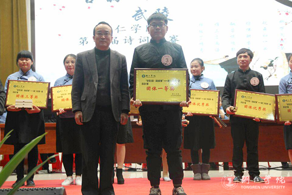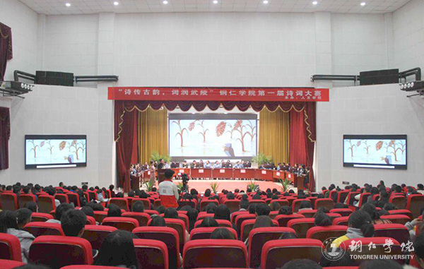 世界杯官网副校长代亮,人文学院院长田黎星、党委书记陈强、副院长、党委副书记杨兴英,马克思主义学院党委副书记蒋小红,校团委副书记蒋旭军,铜仁幼专初等教育学院院长代晓明出席本次活动。人文学院中国古代文学教研室主任水汶副教授、古代汉语教研室主任余桃桃副教授担任本次大赛的仲裁老师。共200余名观众到场观赛。大赛由宣传部田淼、国学院姚雪洁两位老师主持。