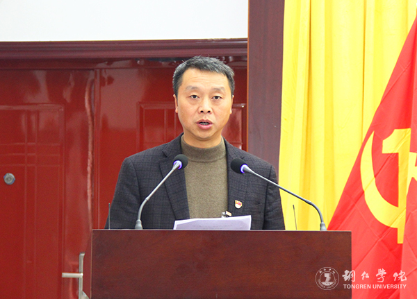 新当选的机关党委委员代表、校工会主席王劲松发言
