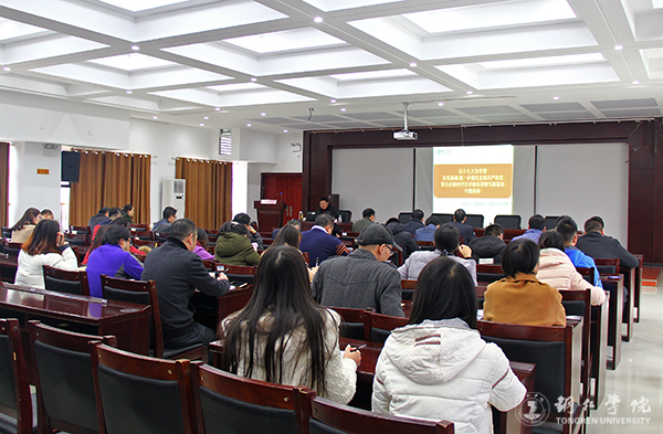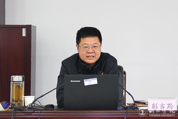 会上,彭吉黔以“以十九大为引领务实基础、进一步强化全面从严治党、努力在新时代开启新征程续写新篇章”为题,从“党的十九大的主要精神、结合学校实际进一步加强党风廉政建设和反腐败斗争、党务工作应知应会”三个大方面进行了阐述。他说,党的十九大是在全面建成小康社会决胜阶段、中国特色社会主义进入新时代的关键时期召开的一次十分重要、意义非凡的大会。大会的主题是:不忘初心,牢记使命,高举中国特色社会主义伟大旗帜,决胜全面建成小康社会,夺取新时代中国特色社会主义伟大胜利,为实现中华民族伟大复兴的中国梦不懈奋斗。党的十九大,作出了中国特色社会主义进入新时代的判断,社会主要矛盾已经转化为人民日益增长的美好生活需要和不平衡不充分的发展之间的矛盾,但我国社会主义所处历史阶段没有变,我国仍处于并将长期处于社会主义初级阶段的基本国情没有变,我国是世界最大发展中国家的国际地位没有变。大会选举产生了以习近平同志为核心的新一届中央领导集体,再一次明确了习近平总书记在党中央、在全党的核心地位;确立了习近平新时代中国特色社会主义思想是我们党必须长期坚持的指导思想,实现了马克思主义中国化的最新飞跃;全面规划部署了到本世纪中叶建设富强民主文明和谐美丽的社会主义现代化强国的路线图和时间表,为实现中华民族伟大复兴提供了行动指南。