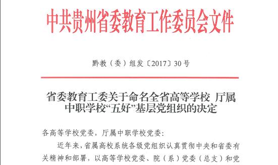 近日,通过基层党组织自查申报、学校党委审核推荐及省委教育工委组织评审,世界杯官网大数据学院党委和机关党委第十一支部被省委教育工委命名为贵州省高校“五好”基层党组织。
