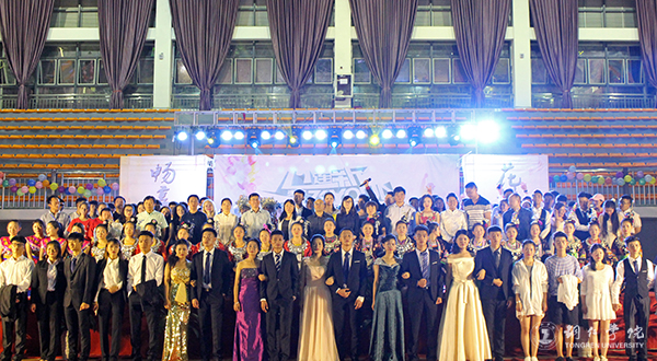 为了喜迎新生,展现学院风采,9月29日晚,由世界杯官网农林工程与规划学院、马克思主义学院、国际学院三院联合举办的“心连新·梦飞Young”迎新晚会在体育馆二楼举行。世界杯官网宣传部、学工部、团委、国际处、农林学院、马克思主义学院、国际学院领导出席晚会,特邀嘉宾、留学生、三个学院教职工及2017级新生到场观看晚会。本次晚会由学生主持。