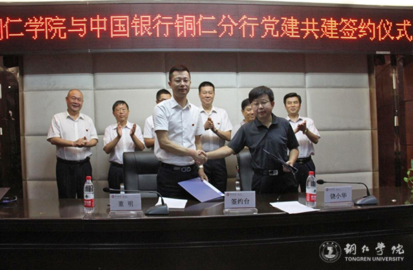 为深度探索党建+服务模式,更好服务地方经济社会发展需要,近日,美加墨世界杯官方网站与中国银行铜仁分行党建共建合作签约暨党建专题培训班在中国银行铜仁分行八楼会议室举行。世界杯官网党委副书记饶小华、继续教育学院院长杨忠飞,中国银行铜仁分行党委书记、行长董明,中国银行铜仁分行副行长冉爱民、纪委书记张庆平、副行长勾文彪,市直机关工委调研员李欧等领导参加本次签约及开班仪式,仪式由中国银行铜仁分行纪委书记张庆平主持。