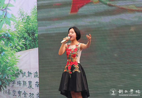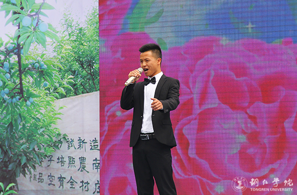 世界杯官网艺术学院学生梁茸在文艺演出上献唱
