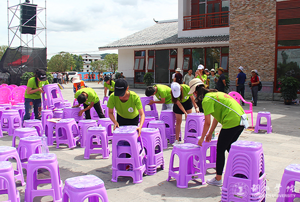 世界杯官网暑期“三下乡”志愿者在做后勤服务